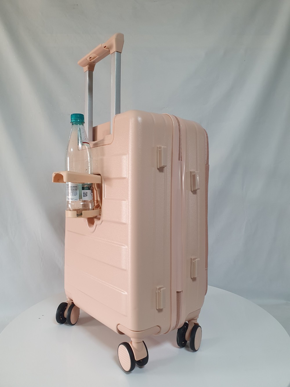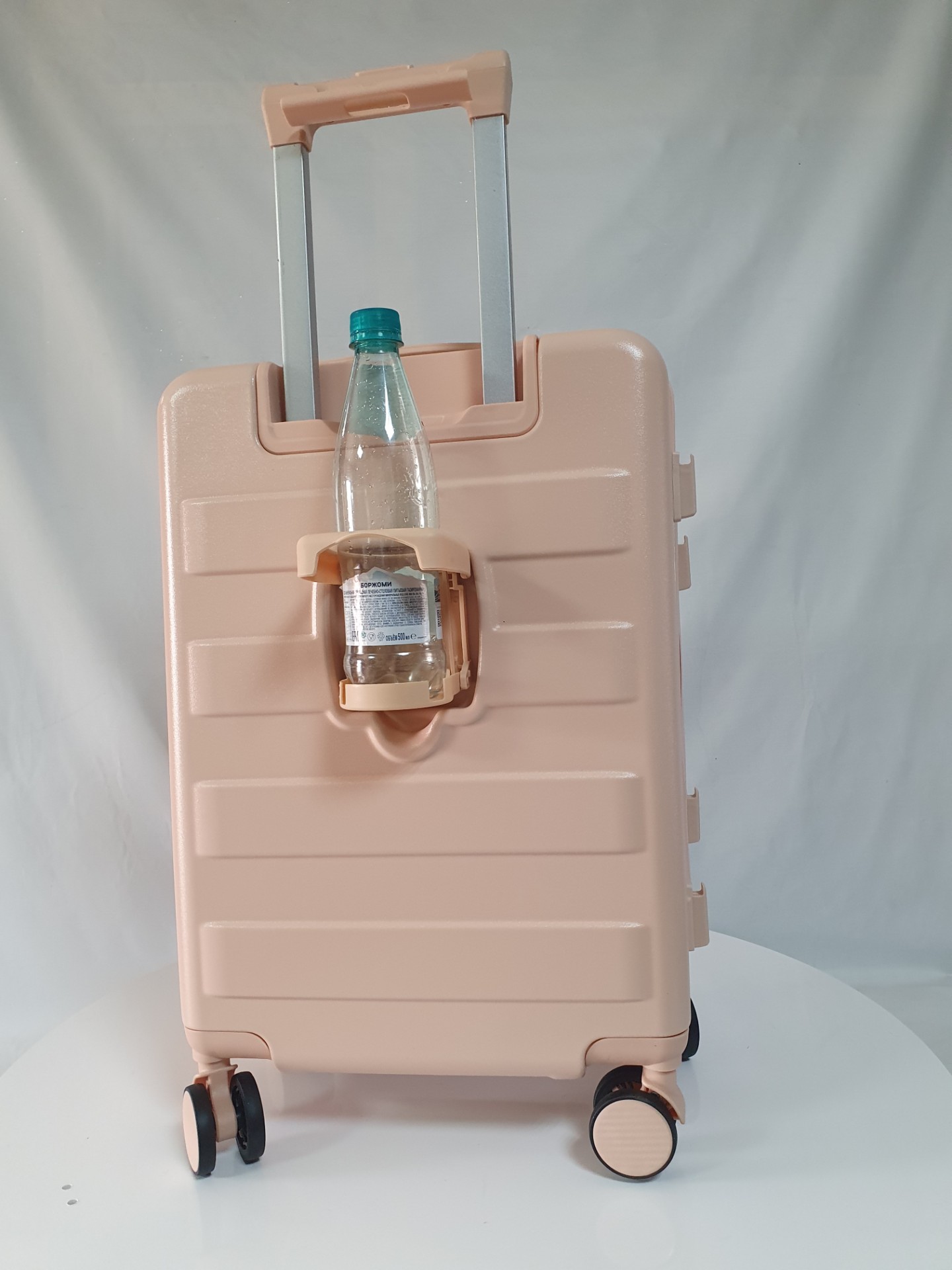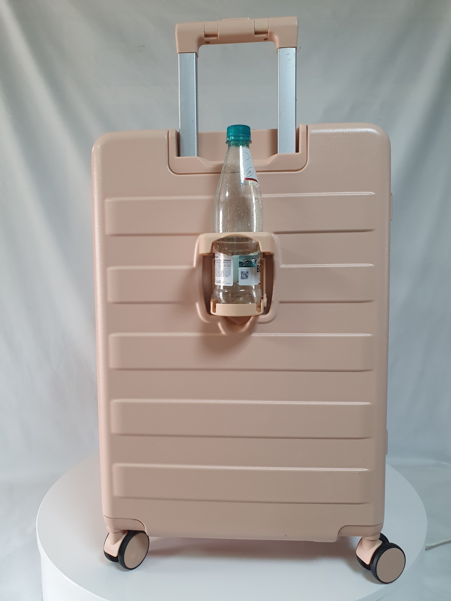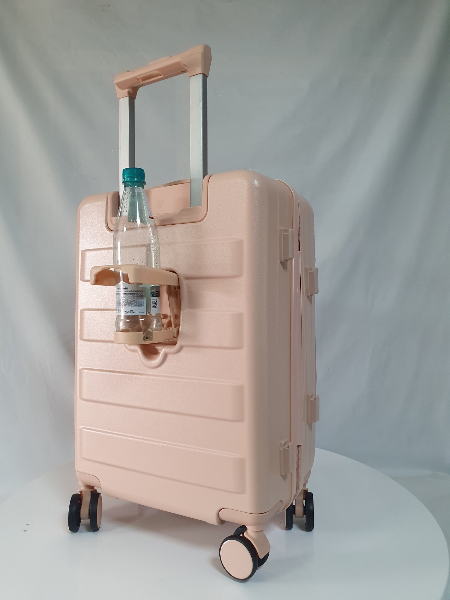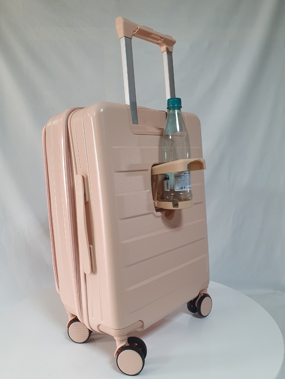 Для удобства пассажира на ручке чемодана есть подставка для телефона и на корпус мы добавили подстаканник. Всё для вашего комфортного путешествия.