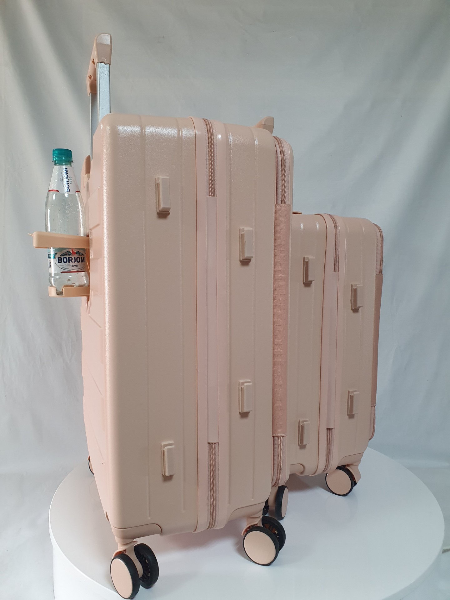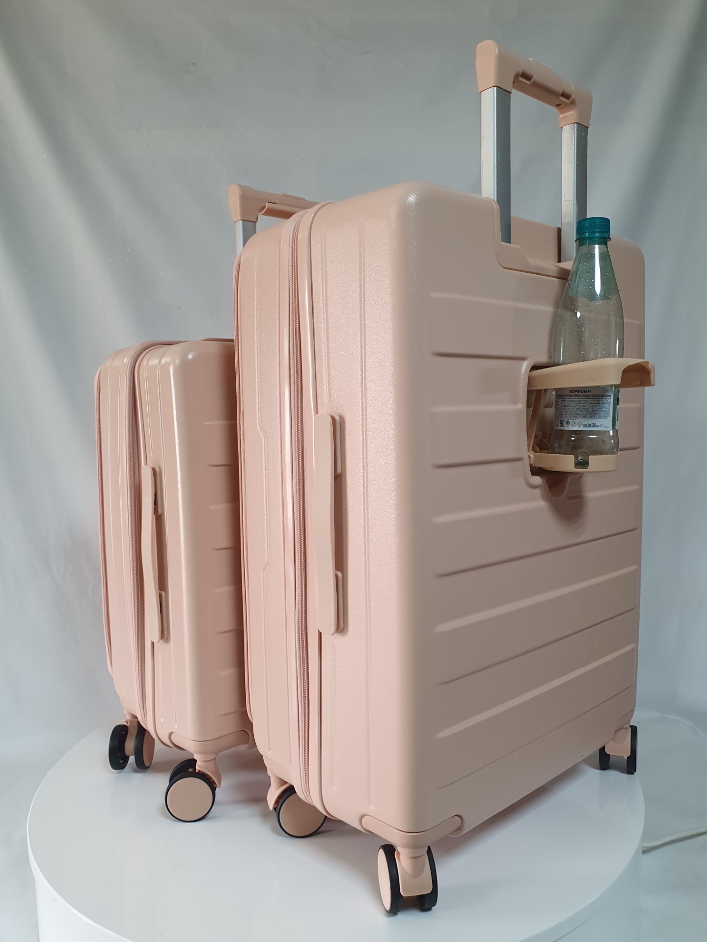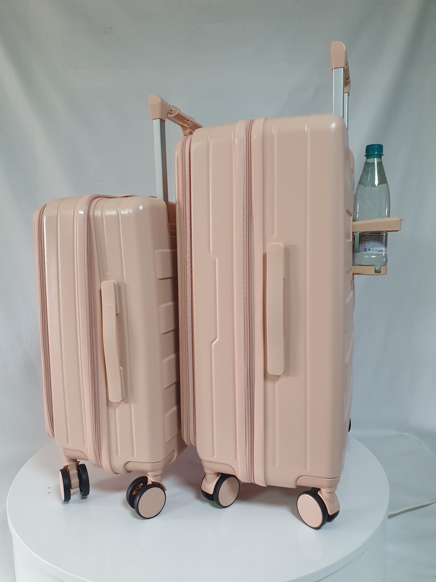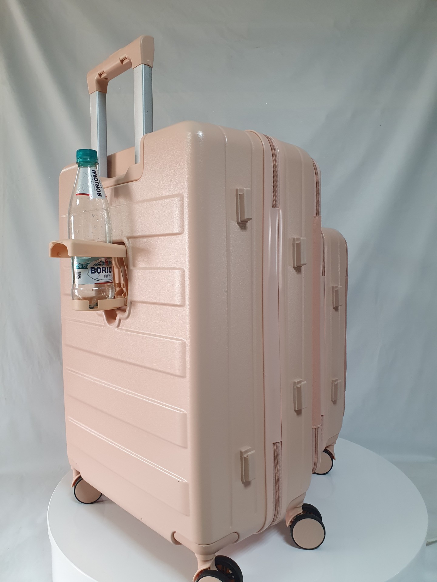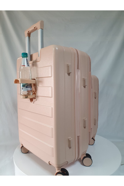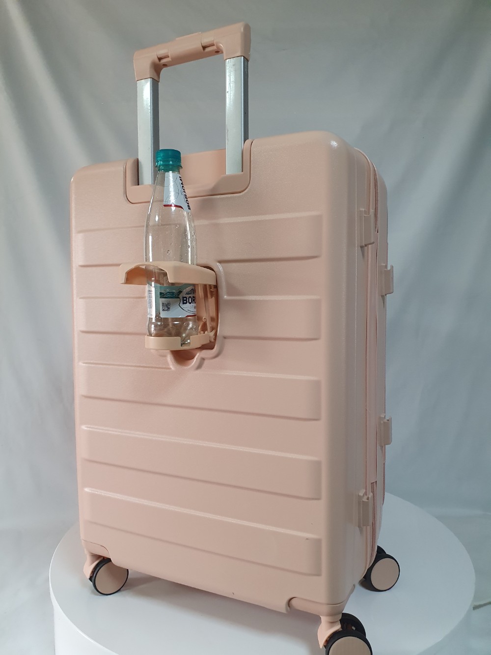 Для удобства пассажира на ручке чемодана есть подставка для телефона и на корпус мы добавили подстаканник. Всё для вашего комфортного путешествия.
