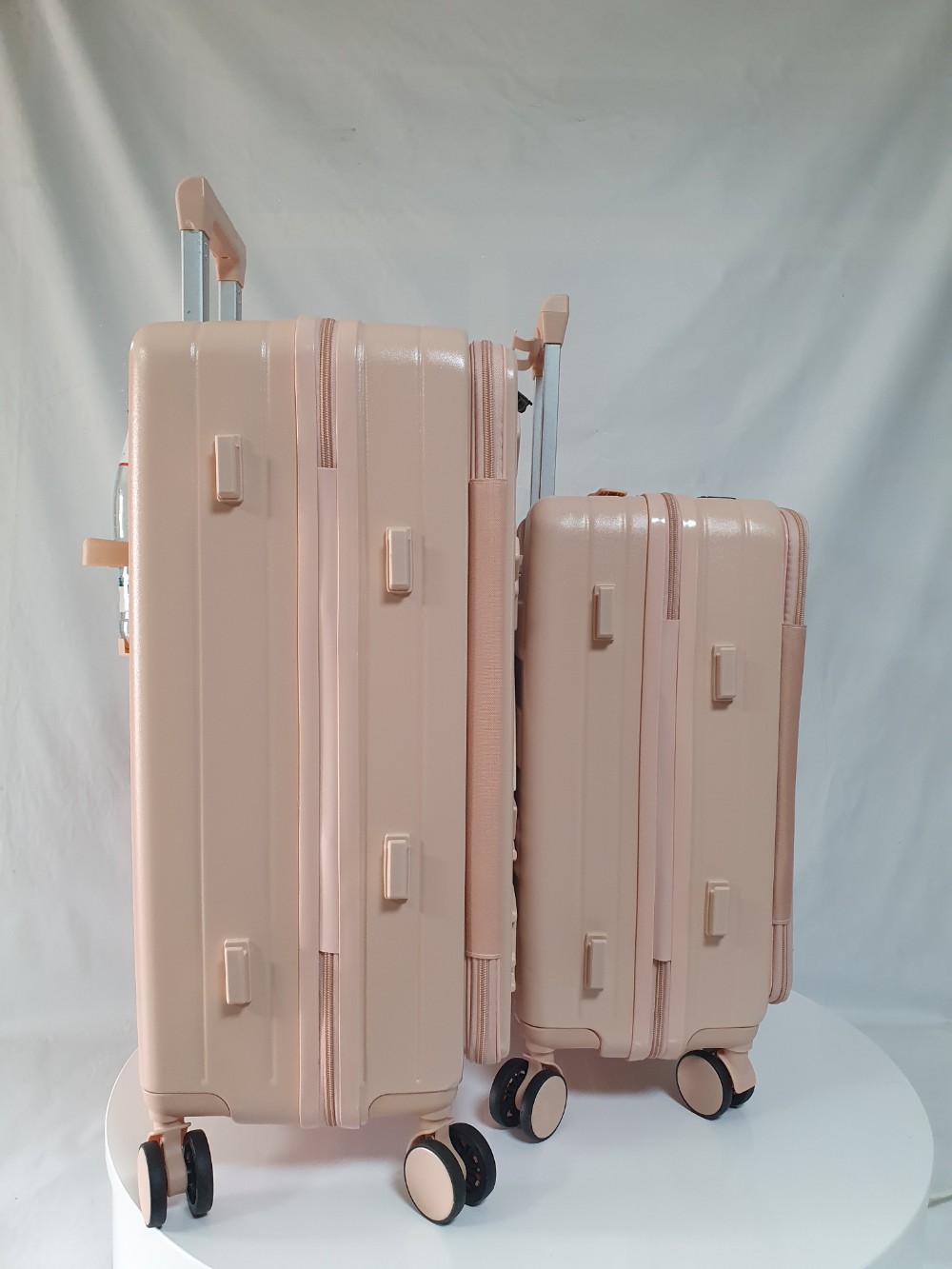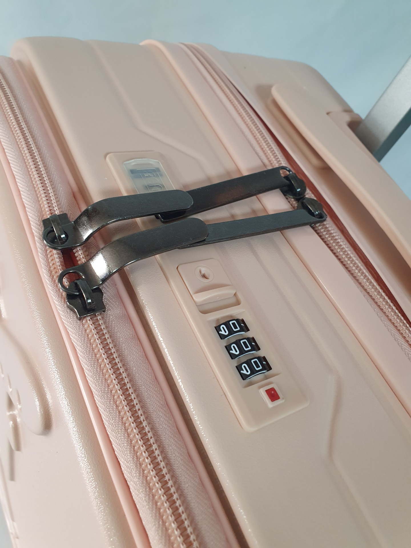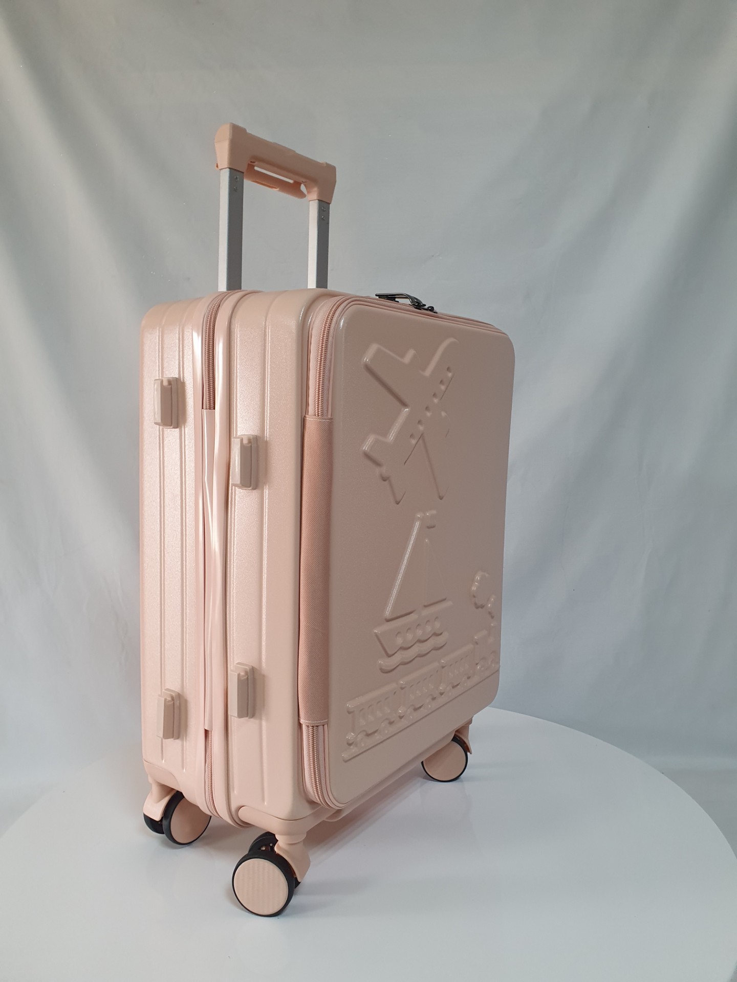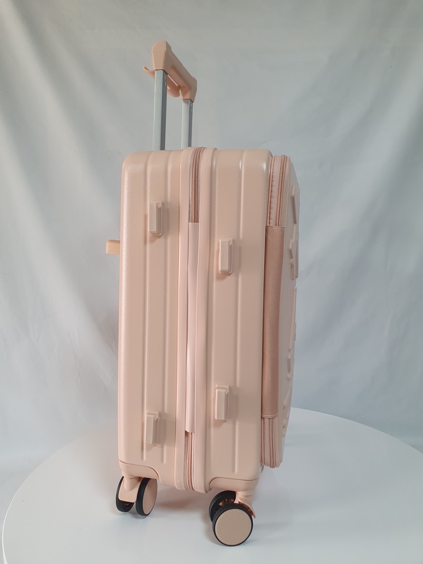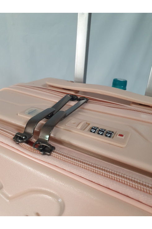 Оснащен четырьмя двойными бесшумными колесами, вращающимися на 360 градусов, изготовленными из силиконовой резины. Эти колеса обеспечивают стабилизацию веса и облегчают транспортировку чемодана.